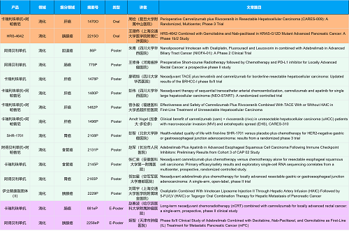 在消化系统肿瘤领域,AG庄闲创新产品相关研究共入选2项口头报告、10项壁报和2项电子壁报,共14项研究。除了明星药物卡瑞利珠单抗和阿帕替尼外,还有5篇阿得贝利单抗治疗消化系统肿瘤的研究入选。此外,HRS-4642、瑞拉芙普-α注射液(SHR-1701)等未上市创新产品也有相应研究入选。随着新老药物前沿研究的不断推进,有望为消化系统肿瘤患者带来新的福音!